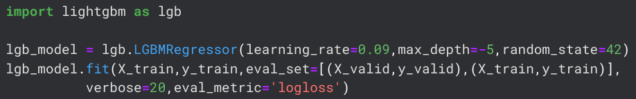 As I have never used any LGBM models before, I followed this tutorial. The following screenshot shows the basic lgbm setup before tuning the hyperparameters.